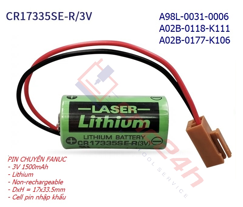 📗 Hệ máy Fanuc thường sử dụng PIN LITHIUM SANYO CR17355SE-R: