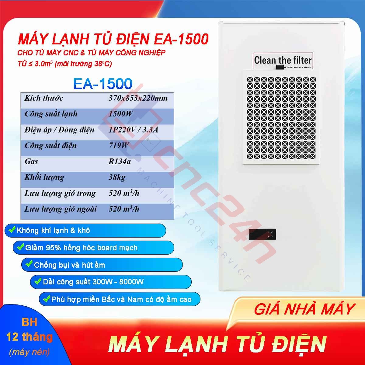 Máy lạnh tủ điện EA-1500 1500W máy lạnh khô cho máy CNC bền, rẻ, hiệu quả cao❄️❄️❄️
