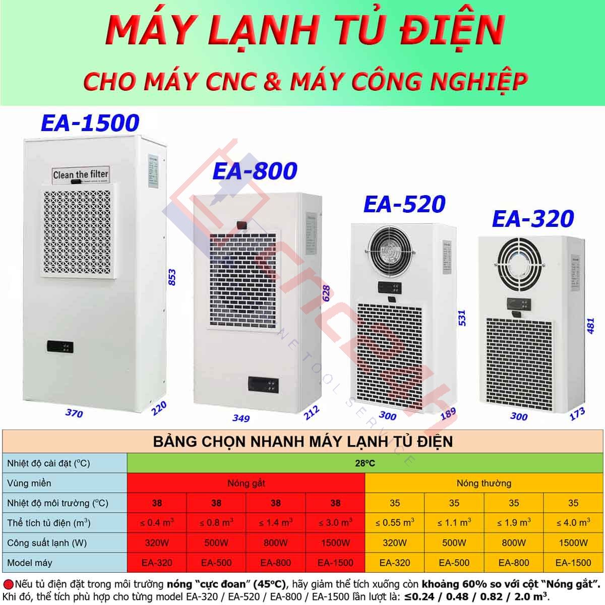 Máy lạnh tủ điện EA là loại máy lạnh khô, cho ra luồng không khí khô. Đảm bảo tủ điện của máy CNC được khử ẩm, khô ráo, sạch sẽ.