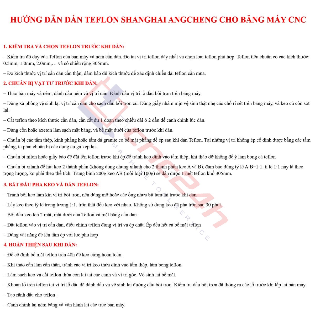 QUY CÁCH TEFLON SHANGHAI ANGCHENG DÁN BĂNG MÁY CNC: